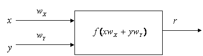 удовлетворяющие этому уравнению, будут лежать на некоторой прямой в плоскости х-у. Любые входные значения для х и у на этой линии будут давать пороговое значение 0,5 для