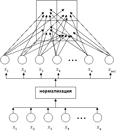 Выходной слой 2х2 Нормализованные входы Процедура нормализации входов Реальные входы |